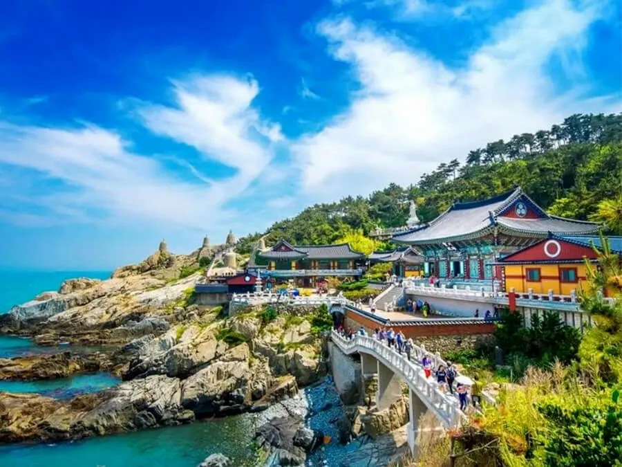 12h00: Ăn trưa tại nhà hàng. Chiều đoàn tiếp tục tham quan: - Chùa Yonggunsa - ngôi chùa bên bờ biển độc đáo nhất xứ kim chi. Chùa Haedong Yonggungsa lại tọa lạc ngay cạnh những vách đá bên bờ biển, với thế tựa lưng vào núi, tạo cho ngôi chùa cảnh quan vô cùng thoáng đãng và yên bình. Vẻ đẹp kỳ vĩ của ngôi chùa nổi bật lên giữa không gian bao la của trời đất, biển cả mênh mông cùng núi non trùng điệp, một trong những trải nghiệm thú vị nhất khi đến đây là dừng chân giữa đoạn bậc thang dẫn lên chùa để tận hưởng những âm thanh êm dịu của sóng và ngắm nhìn khung cảnh huy hoàng khi mặt trời mọc trên biển. - Haeundae Blues line train bắt đầu hoạt động vào tháng 10 năm 2020, trên một số đoạn của tuyến đường sắt ven biển. Heundae Blue Line Park Station khởi hành từ ga Mipo, chạy một đoạn 4,8 km đến ga Songjeong. Ghế ngồi của tàu tham quan hướng ra biển nên Quý khách có thể tận hưởng khung cảnh biển Busan trong xanh tuyệt vời (đã bao gồm vé khứ hồi).
